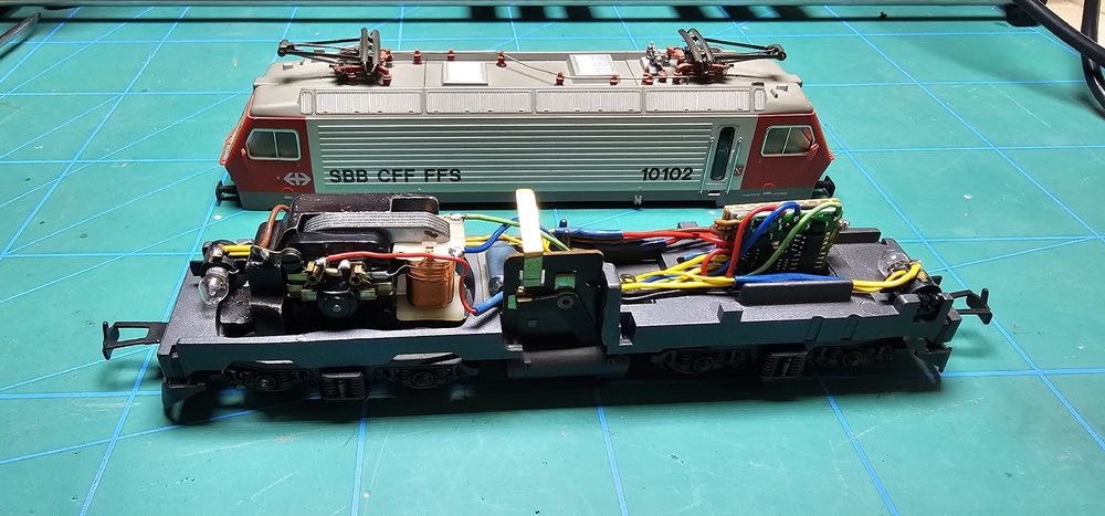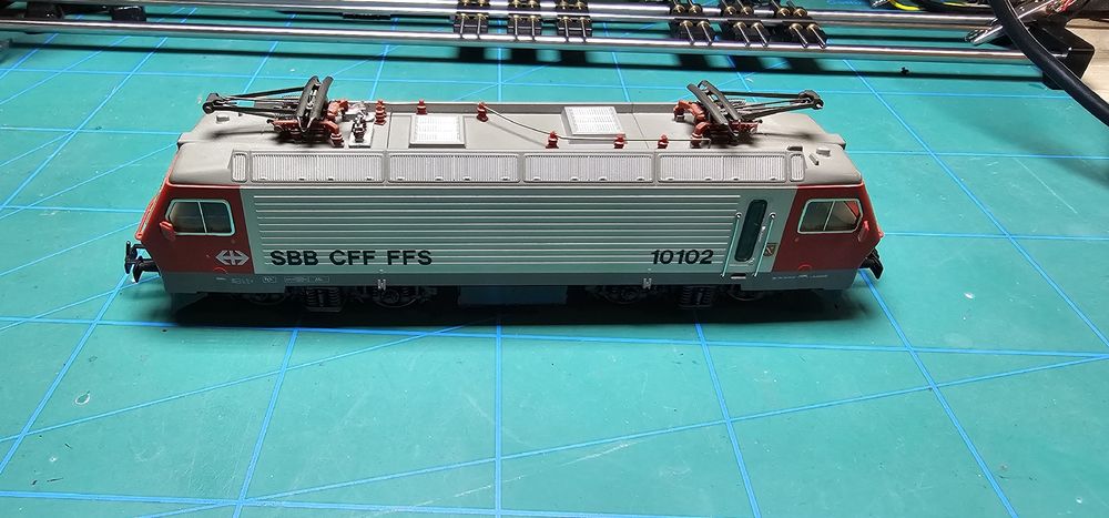 Originaler Zustand mit elektronischer Vorumschaltung, läuft nach grossem Service wie am ersten Tag. Rückspiegel und Puffer alle vorhanden. Panthos durch CH-Panthos von Sommerfeldt für 42.- ersetzt.